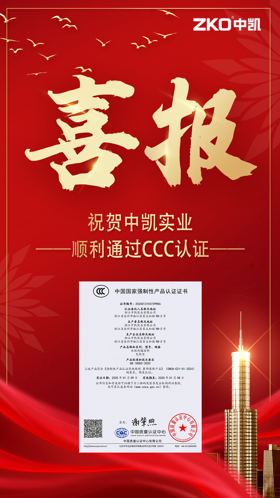 浙江中凱實(shí)業(yè)有限公司是一家由美國(guó)杜邦涂料化工集團(tuán)有限公司提供高新技術(shù),與美國(guó)杜邦化工集團(tuán)有限公司授權(quán)在中國(guó)生產(chǎn)各種建筑涂料的制造企業(yè)。